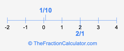 We'll start by presenting the illustration below that shows you where 1/10 and 2/1 are positioned on a number line. This will help you fully understand and visualize our calculations.