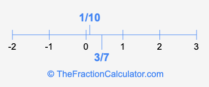 We'll start by presenting the illustration below that shows you where 1/10 and 3/7 are positioned on a number line. This will help you fully understand and visualize our calculations.