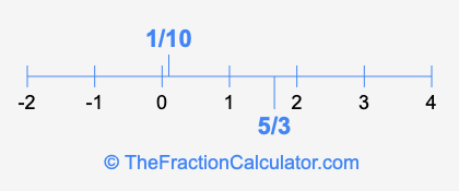 We'll start by presenting the illustration below that shows you where 1/10 and 5/3 are positioned on a number line. This will help you fully understand and visualize our calculations.