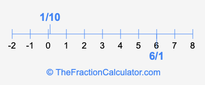 We'll start by presenting the illustration below that shows you where 1/10 and 6/1 are positioned on a number line. This will help you fully understand and visualize our calculations.