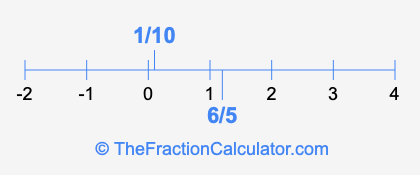 We'll start by presenting the illustration below that shows you where 1/10 and 6/5 are positioned on a number line. This will help you fully understand and visualize our calculations.