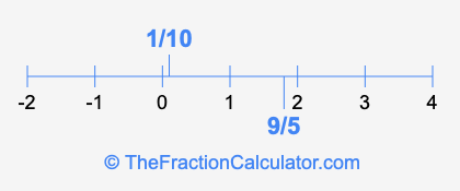 We'll start by presenting the illustration below that shows you where 1/10 and 9/5 are positioned on a number line. This will help you fully understand and visualize our calculations.