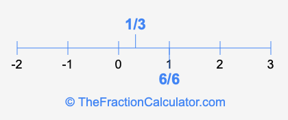 We'll start by presenting the illustration below that shows you where 1/3 and 6/6 are positioned on a number line. This will help you fully understand and visualize our calculations.