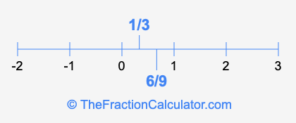 We'll start by presenting the illustration below that shows you where 1/3 and 6/9 are positioned on a number line. This will help you fully understand and visualize our calculations.