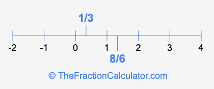 We'll start by presenting the illustration below that shows you where 1/3 and 8/6 are positioned on a number line. This will help you fully understand and visualize our calculations.