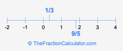 We'll start by presenting the illustration below that shows you where 1/3 and 9/5 are positioned on a number line. This will help you fully understand and visualize our calculations.