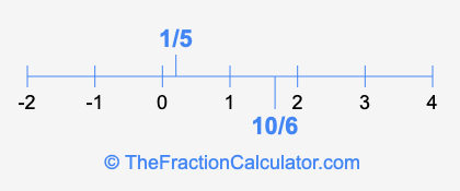 We'll start by presenting the illustration below that shows you where 1/5 and 10/6 are positioned on a number line. This will help you fully understand and visualize our calculations.
