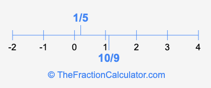 We'll start by presenting the illustration below that shows you where 1/5 and 10/9 are positioned on a number line. This will help you fully understand and visualize our calculations.