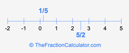 We'll start by presenting the illustration below that shows you where 1/5 and 5/2 are positioned on a number line. This will help you fully understand and visualize our calculations.