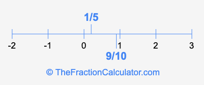 We'll start by presenting the illustration below that shows you where 1/5 and 9/10 are positioned on a number line. This will help you fully understand and visualize our calculations.