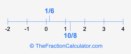 We'll start by presenting the illustration below that shows you where 1/6 and 10/8 are positioned on a number line. This will help you fully understand and visualize our calculations.