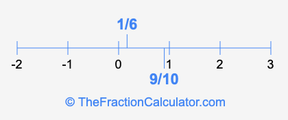 We'll start by presenting the illustration below that shows you where 1/6 and 9/10 are positioned on a number line. This will help you fully understand and visualize our calculations.