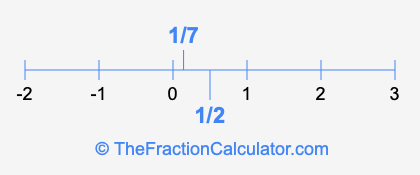 We'll start by presenting the illustration below that shows you where 1/7 and 1/2 are positioned on a number line. This will help you fully understand and visualize our calculations.