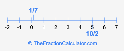We'll start by presenting the illustration below that shows you where 1/7 and 10/2 are positioned on a number line. This will help you fully understand and visualize our calculations.