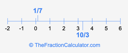 We'll start by presenting the illustration below that shows you where 1/7 and 10/3 are positioned on a number line. This will help you fully understand and visualize our calculations.