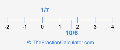 We'll start by presenting the illustration below that shows you where 1/7 and 10/6 are positioned on a number line. This will help you fully understand and visualize our calculations.