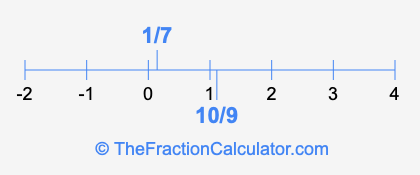 We'll start by presenting the illustration below that shows you where 1/7 and 10/9 are positioned on a number line. This will help you fully understand and visualize our calculations.