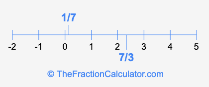 We'll start by presenting the illustration below that shows you where 1/7 and 7/3 are positioned on a number line. This will help you fully understand and visualize our calculations.