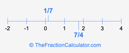 We'll start by presenting the illustration below that shows you where 1/7 and 7/4 are positioned on a number line. This will help you fully understand and visualize our calculations.