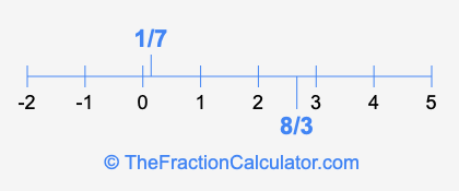 We'll start by presenting the illustration below that shows you where 1/7 and 8/3 are positioned on a number line. This will help you fully understand and visualize our calculations.