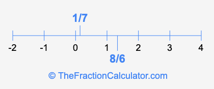 We'll start by presenting the illustration below that shows you where 1/7 and 8/6 are positioned on a number line. This will help you fully understand and visualize our calculations.