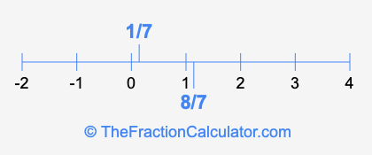 We'll start by presenting the illustration below that shows you where 1/7 and 8/7 are positioned on a number line. This will help you fully understand and visualize our calculations.