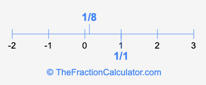We'll start by presenting the illustration below that shows you where 1/8 and 1/1 are positioned on a number line. This will help you fully understand and visualize our calculations.