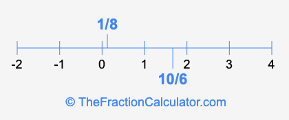We'll start by presenting the illustration below that shows you where 1/8 and 10/6 are positioned on a number line. This will help you fully understand and visualize our calculations.
