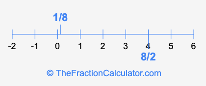 We'll start by presenting the illustration below that shows you where 1/8 and 8/2 are positioned on a number line. This will help you fully understand and visualize our calculations.