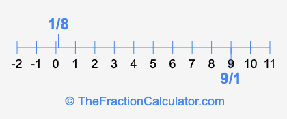 We'll start by presenting the illustration below that shows you where 1/8 and 9/1 are positioned on a number line. This will help you fully understand and visualize our calculations.