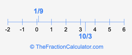 We'll start by presenting the illustration below that shows you where 1/9 and 10/3 are positioned on a number line. This will help you fully understand and visualize our calculations.