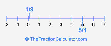 We'll start by presenting the illustration below that shows you where 1/9 and 5/1 are positioned on a number line. This will help you fully understand and visualize our calculations.