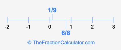 We'll start by presenting the illustration below that shows you where 1/9 and 6/8 are positioned on a number line. This will help you fully understand and visualize our calculations.