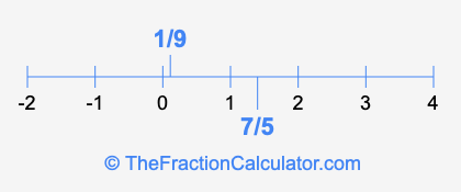 We'll start by presenting the illustration below that shows you where 1/9 and 7/5 are positioned on a number line. This will help you fully understand and visualize our calculations.