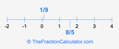 We'll start by presenting the illustration below that shows you where 1/9 and 8/5 are positioned on a number line. This will help you fully understand and visualize our calculations.