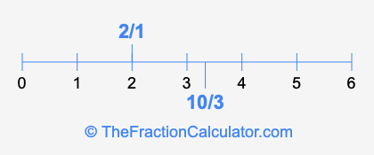 We'll start by presenting the illustration below that shows you where 2/1 and 10/3 are positioned on a number line. This will help you fully understand and visualize our calculations.
