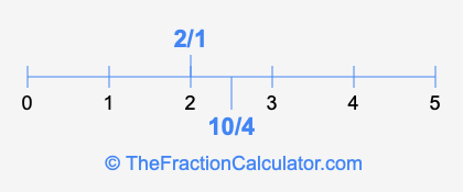 We'll start by presenting the illustration below that shows you where 2/1 and 10/4 are positioned on a number line. This will help you fully understand and visualize our calculations.