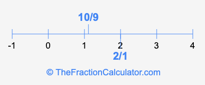 We'll start by presenting the illustration below that shows you where 2/1 and 10/9 are positioned on a number line. This will help you fully understand and visualize our calculations.