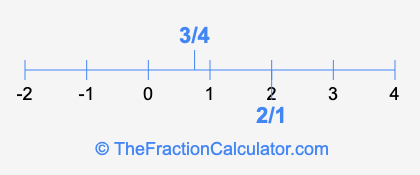 We'll start by presenting the illustration below that shows you where 2/1 and 3/4 are positioned on a number line. This will help you fully understand and visualize our calculations.