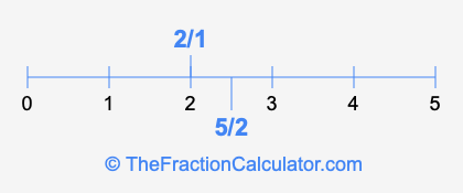 We'll start by presenting the illustration below that shows you where 2/1 and 5/2 are positioned on a number line. This will help you fully understand and visualize our calculations.