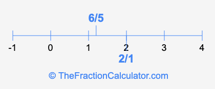 We'll start by presenting the illustration below that shows you where 2/1 and 6/5 are positioned on a number line. This will help you fully understand and visualize our calculations.