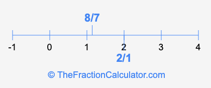 We'll start by presenting the illustration below that shows you where 2/1 and 8/7 are positioned on a number line. This will help you fully understand and visualize our calculations.