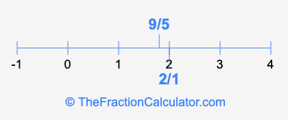 We'll start by presenting the illustration below that shows you where 2/1 and 9/5 are positioned on a number line. This will help you fully understand and visualize our calculations.