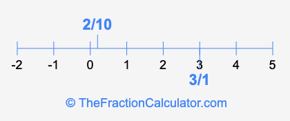 We'll start by presenting the illustration below that shows you where 2/10 and 3/1 are positioned on a number line. This will help you fully understand and visualize our calculations.