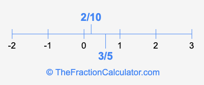 We'll start by presenting the illustration below that shows you where 2/10 and 3/5 are positioned on a number line. This will help you fully understand and visualize our calculations.