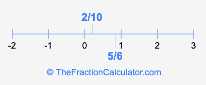 We'll start by presenting the illustration below that shows you where 2/10 and 5/6 are positioned on a number line. This will help you fully understand and visualize our calculations.