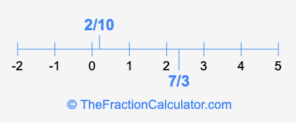 We'll start by presenting the illustration below that shows you where 2/10 and 7/3 are positioned on a number line. This will help you fully understand and visualize our calculations.