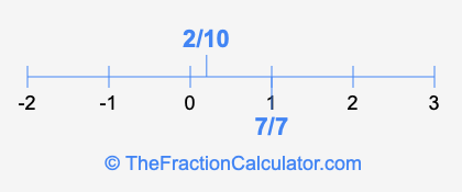 We'll start by presenting the illustration below that shows you where 2/10 and 7/7 are positioned on a number line. This will help you fully understand and visualize our calculations.