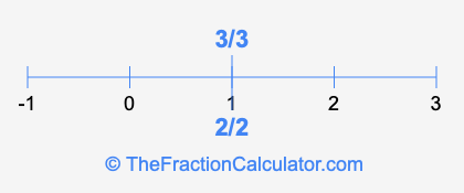 We'll start by presenting the illustration below that shows you where 2/2 and 3/3 are positioned on a number line. This will help you fully understand and visualize our calculations.