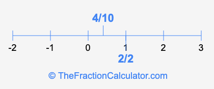 We'll start by presenting the illustration below that shows you where 2/2 and 4/10 are positioned on a number line. This will help you fully understand and visualize our calculations.